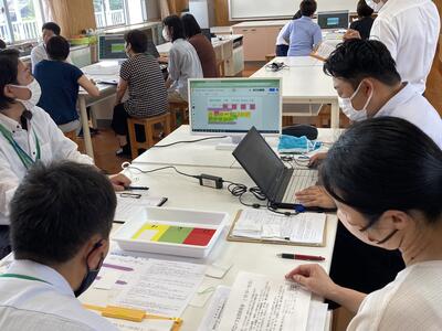 今年度は、研究主任の提案で、職員研修の中に「OJTミニミニタイム」といった、先生方の学習指導や支援、工夫などについて紹介してもらう時間を設定しています。