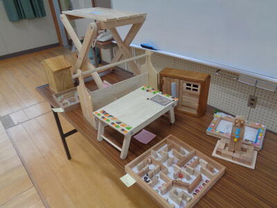 物づくりの学年では、子どもだけでは難しい作業等もありましたが、手伝いをいただきながら安全に気を付けて活動することができました。アイデアを出したり相談したりして取り組み、立派な作品が完成しました。