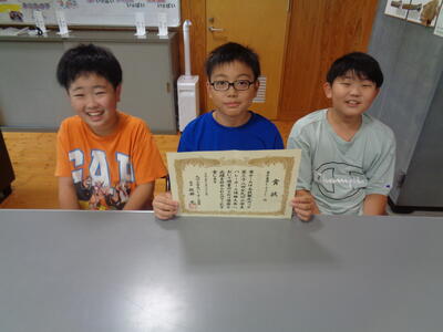 小学校下学年の部で、金賞(3年 池田幸翔さん)銀賞(2年 岡本梨愛さん)、上学年の部で銀賞(5年 川越 亮さん)の3名が表彰されました。