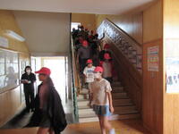 いつもより早めに登校し、体育館で出発式を終えた子ども達は、学校からバスの駐車場(島津邸)まで歩いて出発しました。