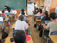 6年生は「下長飯手拍子踊り」の披露を、4年生は学年体育でプールでの水泳学習を、そして他の学年は、1人1台端末を使っての学習をしていました。学習の場面では、保護者も一緒にお手伝いをしていただいて楽しい学習になったようです。