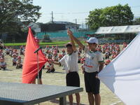 予行練習では、それぞれの学年の種目の入場や退場の仕方、高学年の児童役員の仕事内容について確認をして、役割にそってできるかどうか取り組みました。今日の経験が、本番に生かせることと思います。
