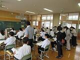 姫城中学校に南小学校と明道小学校の先生方が集まり、数学・英語・技術(プログラミング)の授業を参観しました。その後、授業研究会と情報交換を行いました。