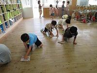 ていねいな雑巾がけをしています。1年生も無言で一生懸命雑巾がけをしていました。