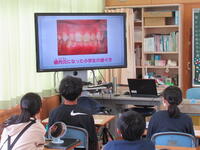 5年生が、「全国小学生歯みがき大会」の取組をしました。参加を申し込むと、歯磨き指導の映像や資料が届き、学年全体で同じように歯の健康や歯みがきについて学習することができます。