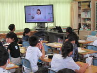 自分の歯を手鏡で観察したり、みがき残しの多い部分を予想したり、学習の中ではクイズ形式で問題が出題されるものでした。子どもたちは反応よく問題に答えて、丁寧な歯みがきの仕方を学習することができました。