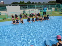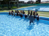 7日は梅雨の合間の貴重な晴天でした。1年生のプールの時間です。注意や準備運動の後、「バディ」「オー」と2人組、3人組の確認をしました。「冷たかった」「気持ちよかった」「顔をつけたよ」「大きなプールに入りたい」といろいろな感想が出ました。ルールを守って楽しい時間になったようです。