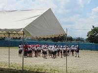 熱中症や新型コロナウイルス感染に気を付けながらの練習です。