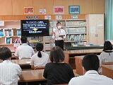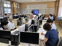 初めに、「本校のICT機器活用に関する取組の発表と報告」を情報教育担当の原先生が行いました。