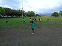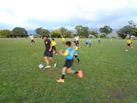 姫城FCを紹介します。柚木﨑監督の指導のもと、姫城グラウンドで上級生チームと下級生チームが元気よく練習していました。監督やコーチの声、笛の合図等でさっと集合し、指導のあと、さっとポジションに戻る姿が心に残りました。さすが鍛えられていますね。きつい練習のようでしたが笑顔がいっぱいの子どもたちでした。途中から卒業生の中学生も加わり練習もさらにヒートアップしていきました。昭和59年発足の明道と昭和61年発足の南、2つのサッカーチームが平成11年に姫城FCとしてスタートしたそうです。歴史のあるチームの伝統がしっかりと引き継がれています。
