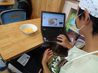 6年生の実習メニューはスクランブルエッグです。フライパンの火加減に注意しながら作りました。調理の感想を中心に写真とともにタブレットにまとめ、おいしくいただきました。1人1台端末を使うと、自分の学習状況を記録していくことができますので振り返りもスムーズにできます。