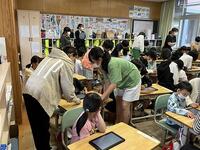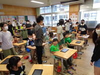 6年生が1年生の教室にやってきました。タブレットの基本的な操作や写真撮影、入力などをていねいに教えていました。さすがは6年生、手際よく行っていました。1年生もいろいろな場面で使っていきますので大変勉強になりました。6年生は、昨年度、市教委が行った、Googleの講師によるジュニアICTリーダー養成プロジェクトの出前講座を受講しました。本当に頼りになる6年生です。
