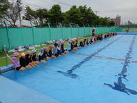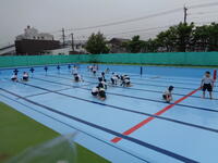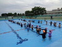 7日は梅雨の合間の貴重な晴天でした。1年生のプールの時間です。注意や準備運動の後、「バディ」「オー」と2人組、3人組の確認をしました。「冷たかった」「気持ちよかった」「顔をつけたよ」「大きなプールに入りたい」といろいろな感想が出ました。ルールを守って楽しい時間になったようです。