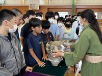 都城市の文化財課の方々を講師に迎え、スライドや埋蔵文化財を使いながら縄文時代や弥生時代の人々の生活等について学ぶ講義が6年生を対象に開催されました。 (都城市埋蔵文化財保存活用整備事業)