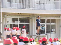 開会式、退場、着団、エール交換の流れにそって練習しました。どちらの団も団長やリーダーの子どもたちの下級生への呼びかけや大きな返事があって、気持ちの引き締まったよい練習になりました。