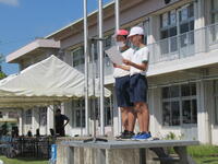予行練習では、それぞれの学年の種目の入場や退場の仕方、高学年の児童役員の仕事内容について確認をして、役割にそってできるかどうか取り組みました。今日の経験が、本番に生かせることと思います。
