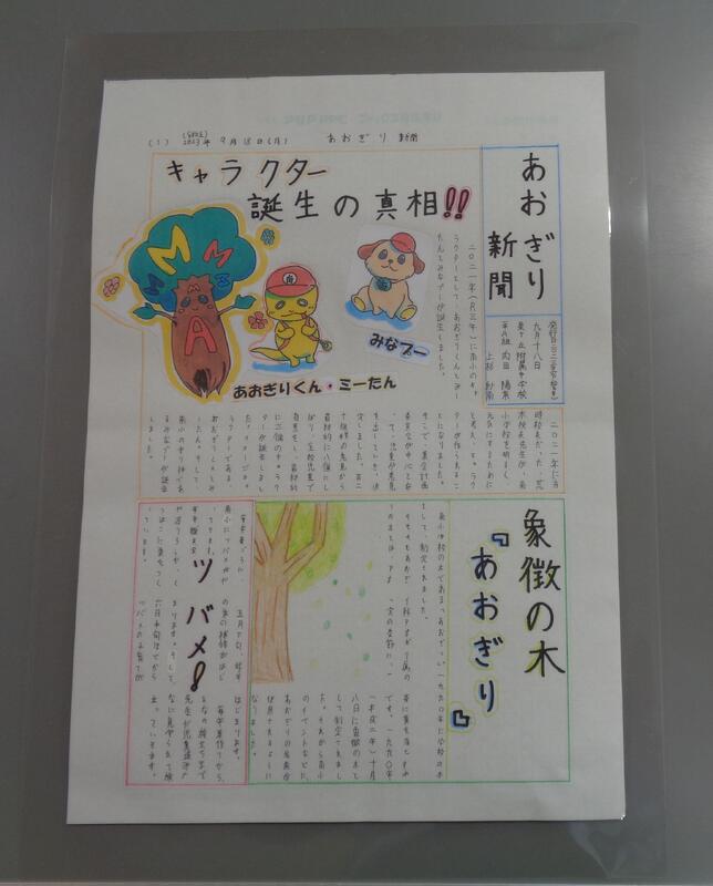 1学期、泉ヶ丘高等学校附属中学校に進学した卒業生二人が、母校の取材にきていました。先日、その時の取材内容が新聞になって南小学校に届きました。伝統芸能のこと、南小キャラクターのこと、学校の木「あおぎり」のことなど取材したことを上手にまとめていました。6年生のフロアに掲示します。ありがとうございました。