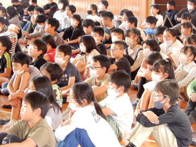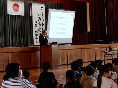 全校児童を対象に「鈴木 中人」先生をお迎えして命を考える授業が行われました。鈴木先生は「いのちのバトンタッチ」をテーマに「生き抜く」「支え合う」「ありがとう」「笑顔」などをキーワードに話が流れていきました。命を大切にするメッセージを、先生自身の体験をもとに優しく そして 強く 訴えていただきました。尊い命について真剣に考える時間になりました。鈴木先生ありがとうございました。
