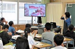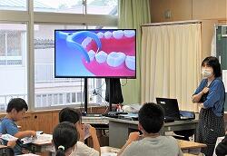 動画を見ながら、自分の歯みがきのしかたを振り返り、実際に練習をしました。