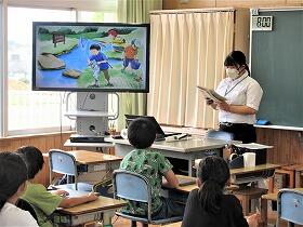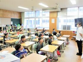 1年生は国語の「かたかなをみつけよう」、2年生は図工の「うごくうごくわたしのおもちゃ」、3年生は学級活動の「タブレットの使い方(情報モラル)」、4年生は図工の「もりあげマスコット」、5年生は家庭科の「ソーイングはじめの一歩」、6年生は総合的な学習の時間の「鹿児島すてき発見」の学習でした。