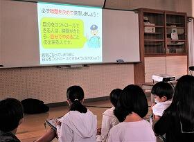 学校では、熱中症予防のため、毎日機器を使って測定して、外で遊べるかどうかを確認しています。