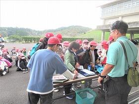 体育館で出発式をした後、島津邸へ移動し、そこからバスで出発しました。