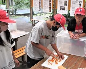 荷物は別の場所に置き、2日めのメインである「野外炊飯(カレー作り)」をする炊飯場に移動しました。