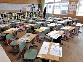 子どもたちは、突然のことにもあわてず、机の下にもぐって安全確保の行動ができていました。