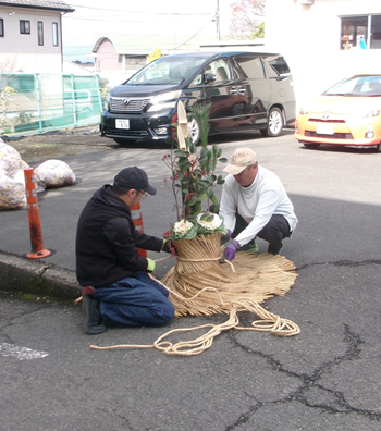 本校の保護者ボランティア団体「大王の輪」の皆様が中心となり、年末恒例の「しめ縄」作りのワークショップと「門松」を作成してくださいました。