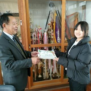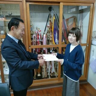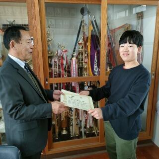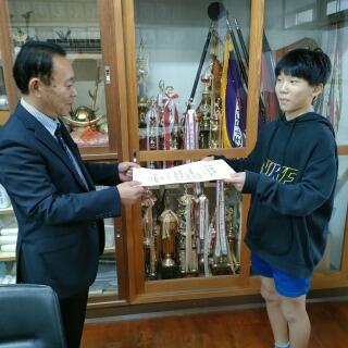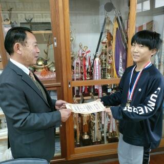 学校にも「努力校賞」をいただきました。賞状と盾と一緒に記念撮影。