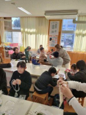本校の保護者ボランティア団体「大王の輪」の皆様が中心となり、年末恒例の「しめ縄」作りのワークショップと「門松」を作成してくださいました。