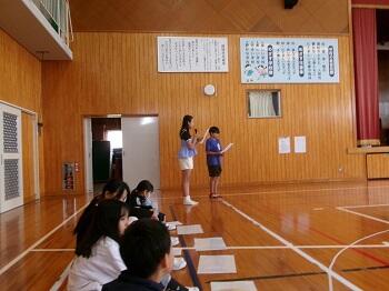 ○×クイズやじゃんけん列車をして6年生と楽しく交流しました。