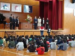 優秀な作品や運動などでよい成績をとった子ども達が、全校の前で表彰されました。