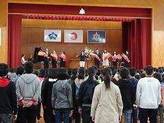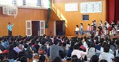 本番を前に、校内でも業間の時間を利用して、全校の前で発表を行いました。