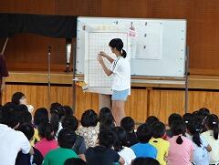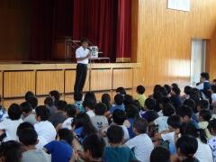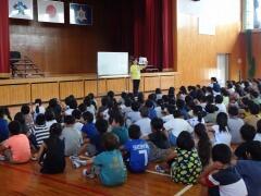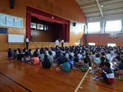 その地区まつりでの発表を前に、10/25(金)の昼休みに大王小のみんなに発表をしました。