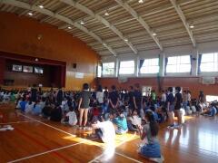 1学期は、体育館を会場に全校児童みんなで、指定された人数でのグループ作りや学校にちなんだ◯☓クイズをしました。