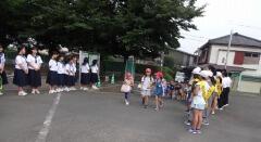 そんな1年生を見ながら、「この子ども達も6年後には、後ろに並んでいる中学生のように成長して、小学生のお手本になっているんだろうなあ。」と、少し感慨にふけってしまいました。