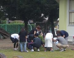 学級担任と子ども達で花を抜いたり、石灰や肥料を撒いたり、耕したりの作業を手作業で行いました。