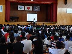 最後に体育館に移動して、中学校の生徒会の先輩たちによる学校紹介や質問タイムに参加しました。