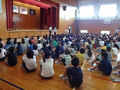 ↑ 校長先生から、夏休みの過ごし方についての話がありました。