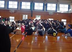 まずは、校長先生から節分が年に4回あることや、立春の前日である2/3の節分の日は邪気を追い払って寒さに負けず元気に過ごそうというお話がありました。