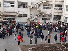 避難指示の放送の後、「お・は・し・も」の合い言葉を守りながら、運動場に避難しました。
