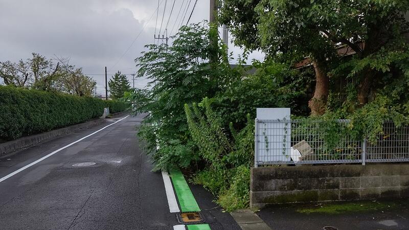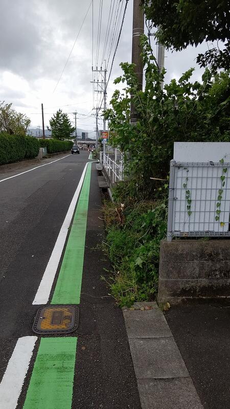 大王町のダイレックスの北側、グリーンベルトがひかれている通学路です。