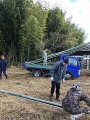 ↑ 5年生がほうきで集めて、2年生が袋に入れました。