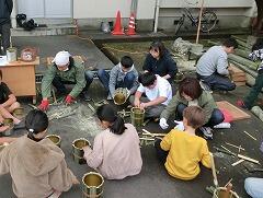 みんなJRCのバッジをつけて、校内や学校周辺の落ち葉などを集めてきれいにしました。