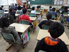 ↑(1年生)後ろの子は、立ち上がってお話を聞くのに夢中でした。