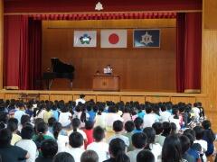 7/12(金)の朝の時間に、全校朝会を行いました。
