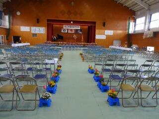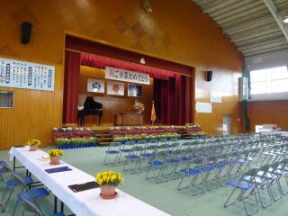 ↑ 卒業式当日の朝、整えられた式場の様子です。