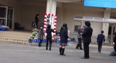 ↑ 花と看板で、入学式会場入り口を飾りました。