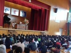 ↑ 6年生が卒業して、全体的に少し寂しい修了式の会場です。